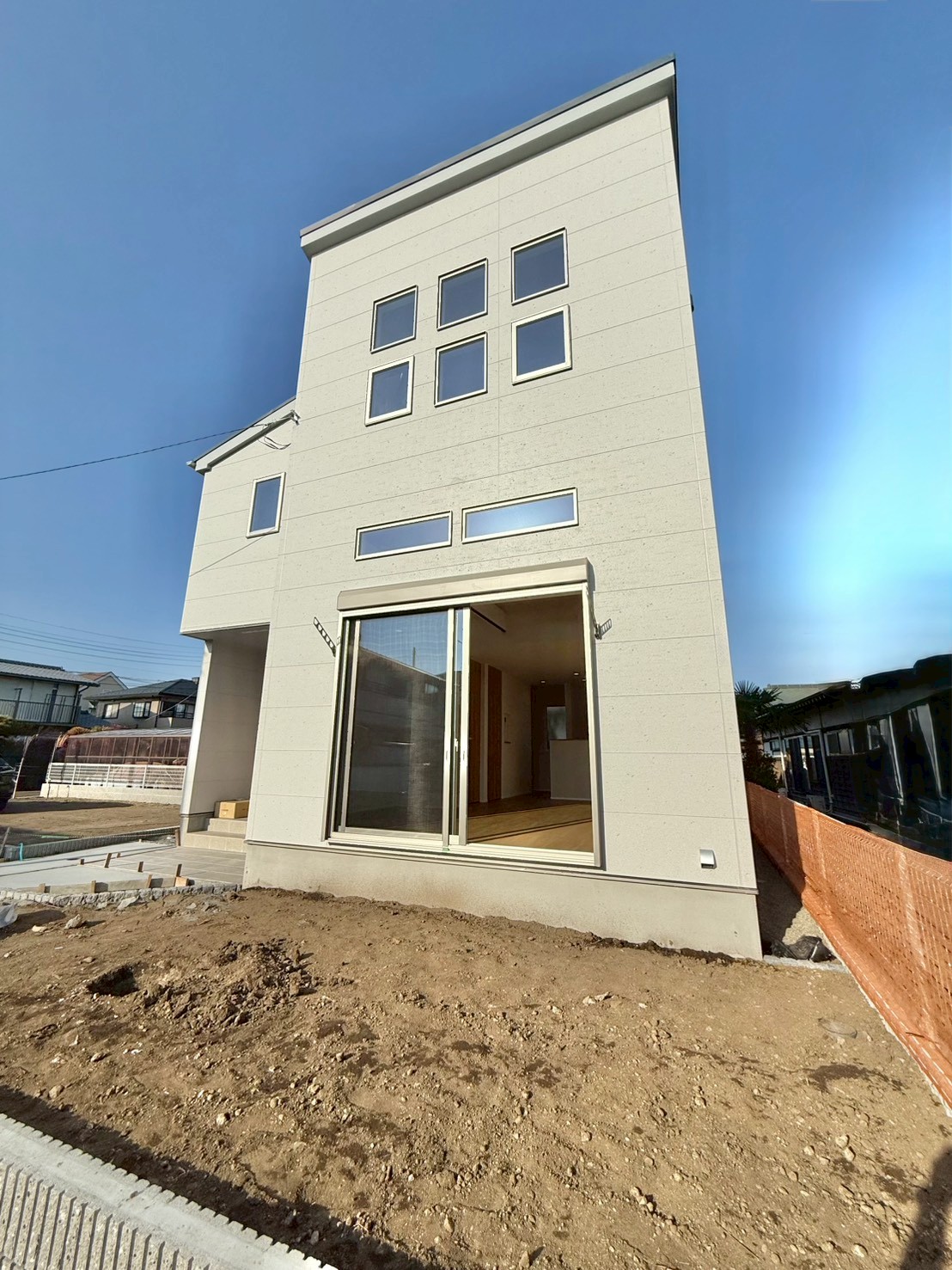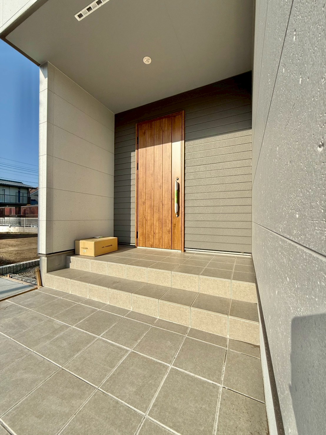 3. 専用アプローチの特等席:道路から奥まっているからこそ、子供の飛び出しも安心。プライベート感も抜群です。
