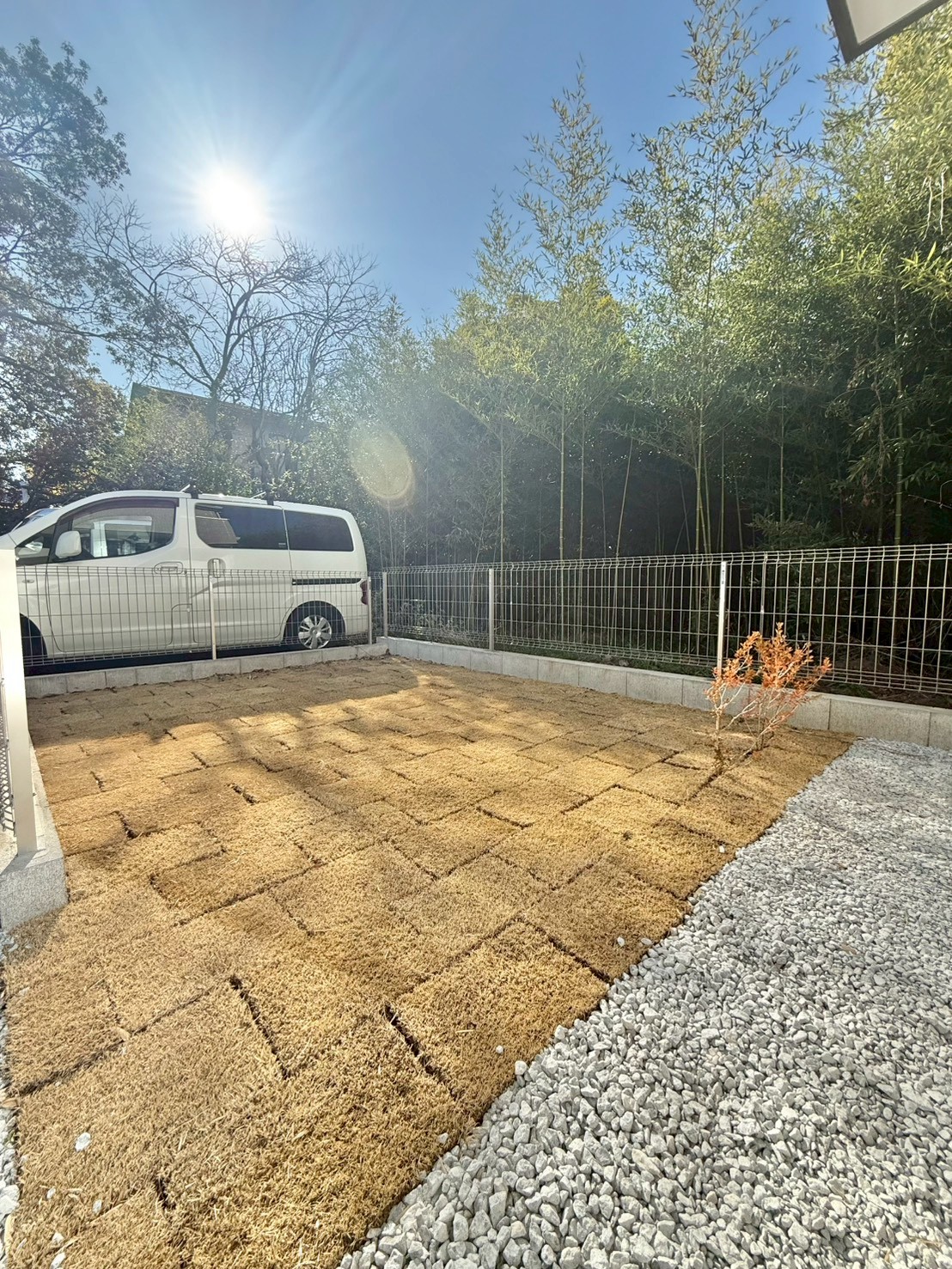 並列2台駐車が楽々なのに広い庭がある。