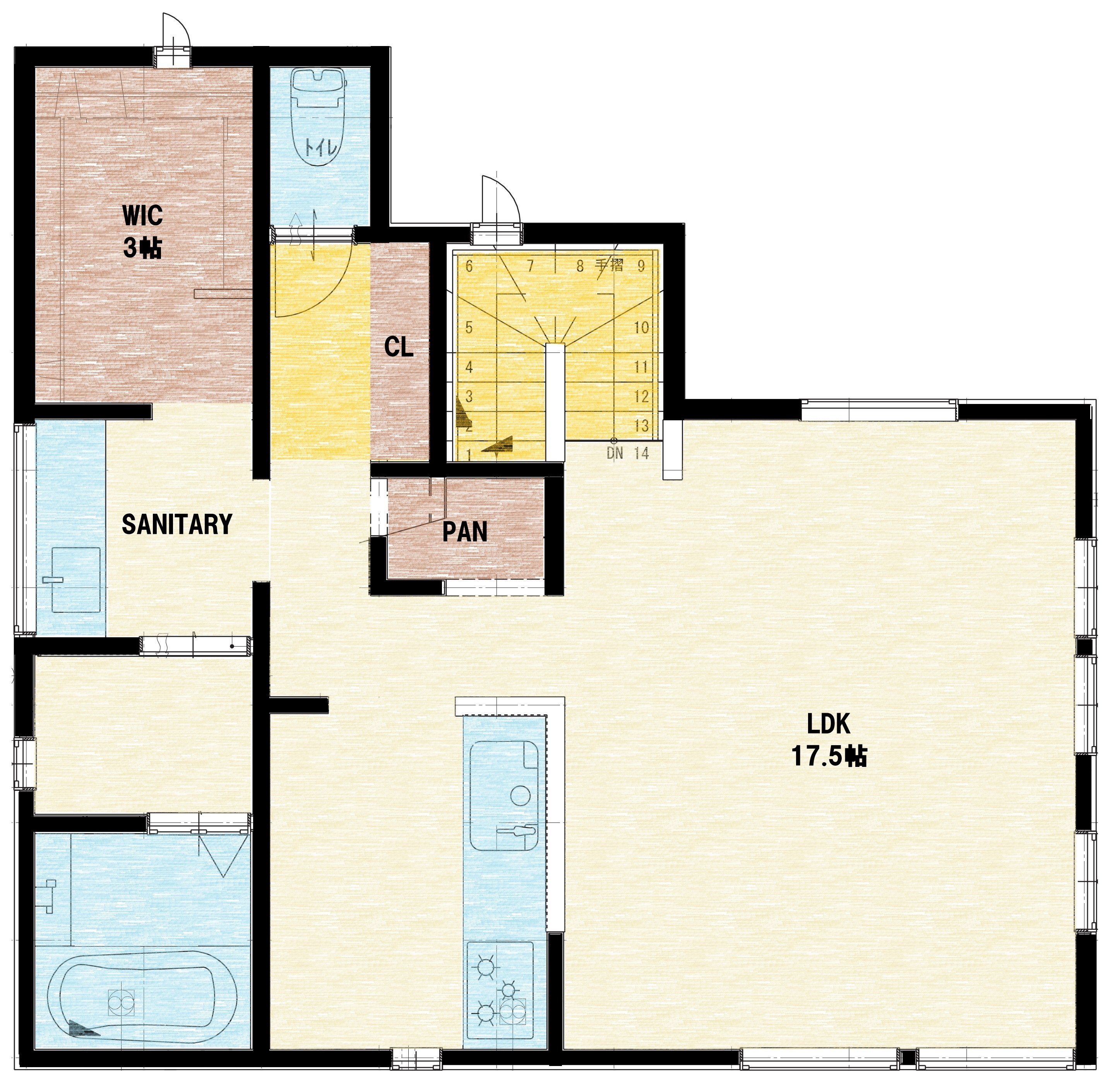 • 神動線: 水回りとファミクロが直結。朝の支度も最短距離で。