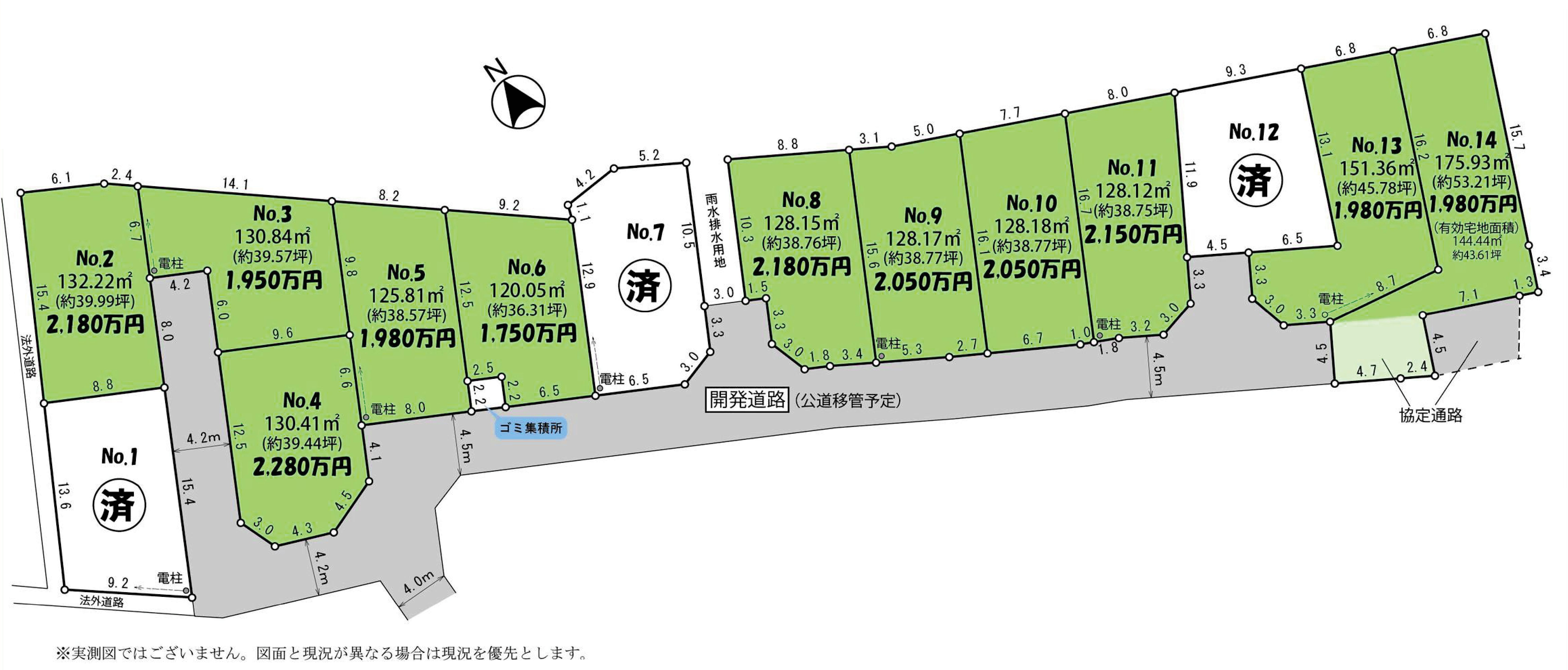 100㎡前後の広さの土地が多いエリアですが、125㎡以上の区割りをされている為、ボリュームプランやアメリカンハウスやガレージハウスの建築もおすすめです。